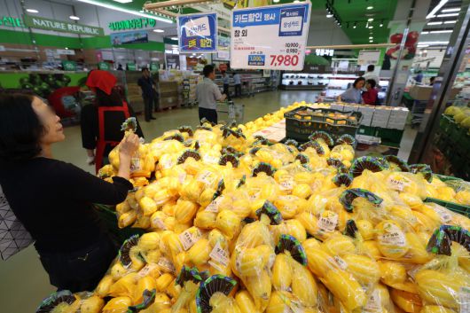 지난달 농산물과 석탄 등 에너지 가격이 하락하면서, 생산자물가가 1년 6개월 만에 가장 큰 폭으로 내렸다. 20일 한국은행에 따르면 5월 생산자물가지수는 2020년을 100으로 봤을 때, 직전 달보다 0.4% 낮은 119.66으로 집계됐다. 4월에 이어 두 달 연속 하락했으며 지난 2023년 11월 이후 가장 큰 내림폭이다. 직전 달과 비교해보면, 참외가 53%, 양파가 42% 가격이 떨어져 농림수산품이 4.4% 낮아졌고, 공산품 가운데서는 석탄·석유제품이 4.2% 하락해 생산자물가를 끌어내렸다. 이날 서울의 한 대형마트에서 시민들이 장을 보고 있다. 신태현 기자 holjjak@ |