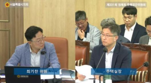 제331회 정례회 서울시의회 주택공간위원회 최진석 주택실장을 상대로 질의하는 최기찬 의원 |