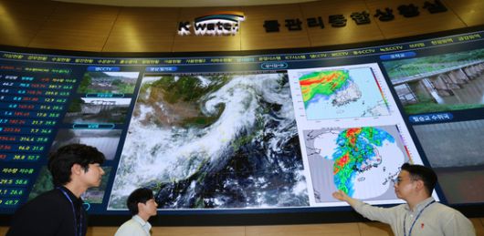 전국에 많은 비가 예보된 가운데 20일 대전 대덕구 한국수자원공사 물관리종합상황실에서 직원들이 호우대비 모니터링을 하고 있다. 뉴스1 |