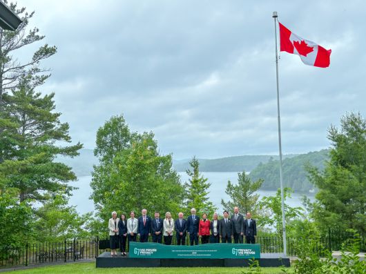 고학수 개인정보보호위원회 위원장(오른쪽에서 첫 번째)이 현지시간 6월 19일 캐나다에서 열린 G7 개인정보 감독기구 라운드테이블에 참석하여 G7 개인정보 감독기구 수장 등과 기념촬영을 하고 있다. |