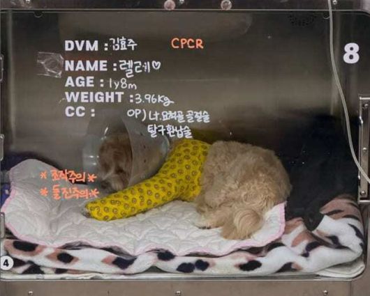함께 공개된 사진 속 렐레는 넥카라를 착용한 채 잠들어 있었으며, 왼쪽 다리엔 붕대가 감겨 있었다. 유리문에 부착된 안내문에는 ‘요척골 골절술’과 ‘탈구 환납’ 수술을 받았다는 내용이 적혀 있어 안타까움을 더했다.