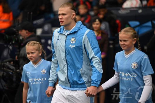 경기를 위해 입장하는 맨시티의 홀란드 ⓒ AFP=뉴스1 |