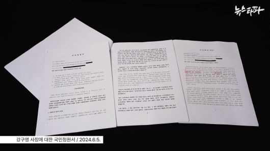 그런데 뉴스타파는 고발장과 다소 배치되는 내용의 문건을 입수했다. 당시 KAI 관계자가 직접 작성해 대통령실 공직기강비서관실에 제출한 ‘국민청원서’라는 제목의 문건이다. 여기에는 강 대표가 스마트플랫폼특별 점검을 지시하며 민주당과 김경수 전 경남지사를 언급했다는 내용이 기록됐다.