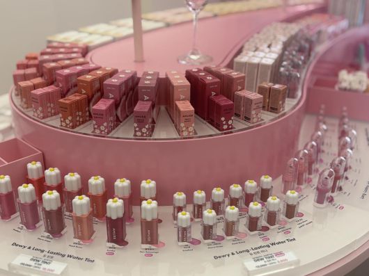 특히 립 틴트 제품은 제형에 따라 젤리 텍스처, 글로우 타입 등으로 구분돼 ‘파우더 벨벳 틴트’, ‘듀 틴트’, ‘젤핏 틴트’, ‘베베 틴트’ 등 네 가지 종류로 전시돼 있었다. 각 제품군마다 10개 이상의 색상이 진열돼 있어 매장 내에 전시된 립 틴트만 약 50종에 달했다. 일부는 핑크 하우스 매장에서만 판매되는 한정 제품으로 구성돼 있었고 테스트 후 바로 구매가 가능한 구조였다.