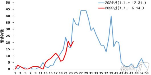 말라리아 환자 주별 발생 추이 (질병청 제공) 2025.6.20/뉴스1
