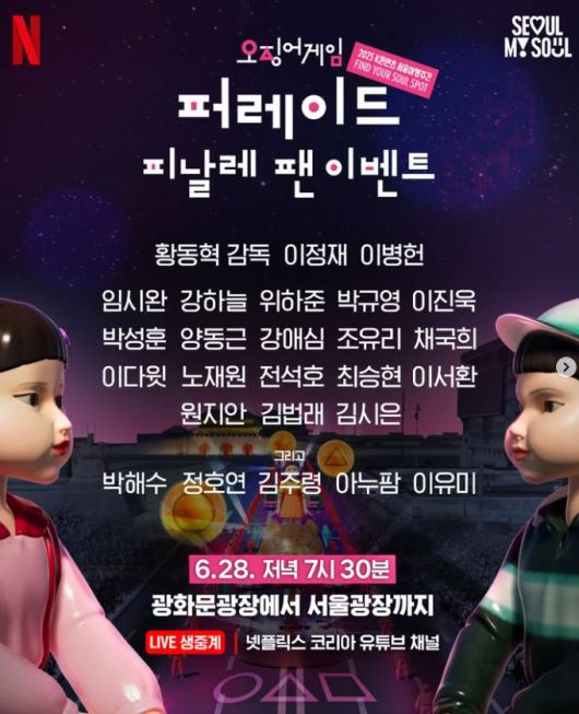 넷플릭스는 오는 28일 '오징어 게임' 시즌3 피날레 이벤트를 개최한다.