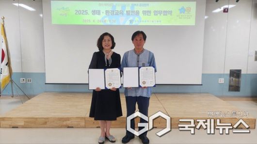 (청주=국제뉴스) 이재기 기자 = 충북도교육청 직속기관 유아교육진흥원(원장 이양순)은 20일 교사연구지원실에서 마을배움길연구소(소장 문재현)와 생태‧환경교육 발전을 위한 업무협약을 체결했다.