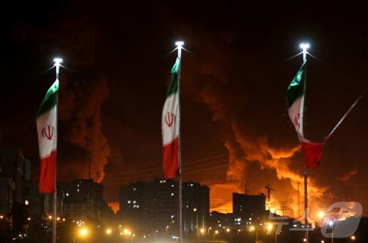 이스라엘의 공격으로 이란의 테헤란 내 샤란 석유 저장고에서 화재가 발생했다. 2025.6.15 ⓒ 로이터=뉴스1 ⓒ News1 김경민 기자 |