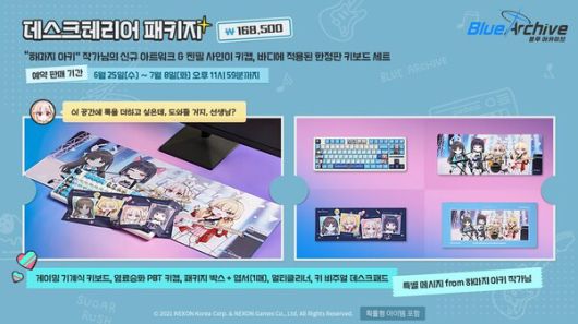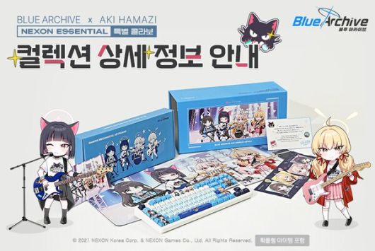 넥슨은 20일 공식 SNS에 "블루 아카이브 X 하마지 아키 컬래버 상품이 넥슨에센셜에 오픈 예정이다. 한정판 기계식 키보드부터 작가 사인이 담긴 엽서까지 다양하고 색다른 상품들로 준비했다. 장식하고, 착용하고, 가지고 다니면서 컬래버 제품을 즐겨보길 바란다"며 소식을 공유했다.