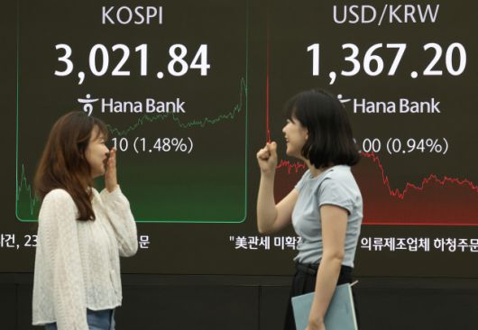 20일 한국거래소에 따르면 코스피지수는 이날 전 거래일 대비 44.10포인트(1.48%) 상승한 3021.84에, 코스닥지수는 9.02포인트(1.15%) 오른 791.53에 거래를 마쳤다. 유가증권시장에서 외국인과 기관투자가가 5645억 원, 385억 원씩 순매수하면서 3년 6개월여 만에 코스피지수 3000 돌파를 견인했다. 지수는 대통령 선거(6월 3일) 이후 10.20% 오르면서 주요 20개국(G20) 중 가장 높은 상승률을 보였다. 올해 전체로 봐도 25.94%의 상승률로 주요국 증시 가운데 1위다. 코스피 시가총액은 2471조 8144억 원으로 역대 최고치를 경신했다.