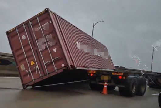 또 컨테이너가 편도 3차로 도로의 2개 차로를 가로막으면서 일대에 극심한 차량 정체가 빚어지고 있다. 정체 구간은 5㎞가 넘는 것으로 알려졌다.