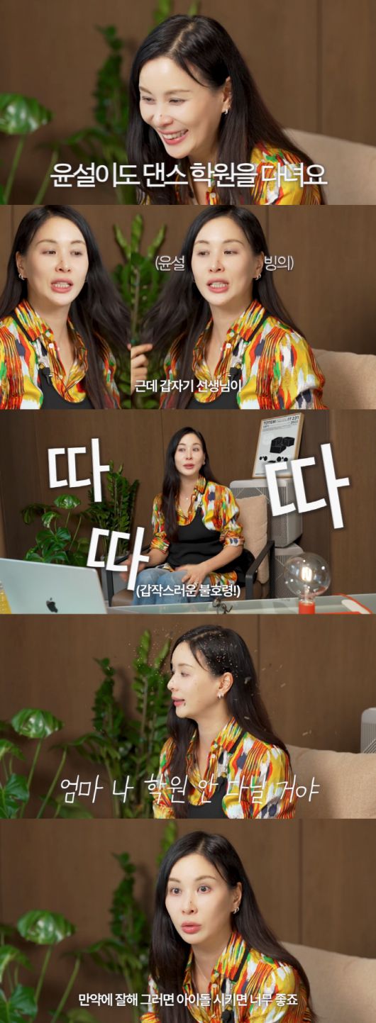 이어 "처음에 우리 딸을 아이돌 전문 댄스 학원에 보냈는데 무섭게 가르치는 곳에 보냈다. 딸이 처음에는 머리 만지고, 거울 큰 것도 있으니까 보면서 들어갔는데 갑자기 불호령이 떨어지고 스트레칭을 30분 시키는 거다. 몸 쓰는 거라 다치면 안 되니까"라고 설명했다.
