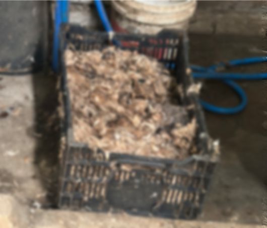 농장을 방문한 B씨가 발견한 개털이 수북이 쌓여있는 상자. B씨는 상자와 주위의 장비들을 보고 농장이 개 도살장으로 사용되고 있음을 파악했다. 독자 제공 |