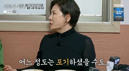 이를 들은 박정수는 "그러니까 그런 말은 하수 있다. 그런데 말만 그렇게 하시지 마음속으로는 어느정도는 포기 하셨을지 모른다. 포기 하지 않았을까? 난 그 생각 든다. 말이라도 안하면 더 안할까봐"라고 솔직하게 말해 웃음을 자아냈다.