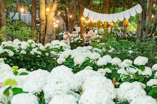 초전공원을 지나 월아산에 이르면 또 하나의 축제가 펼쳐진다. 22일까지 열리는 ‘월아산 수국 축제’다. 만개한 수국으로 뒤덮인 산길 곳곳에는 ‘오늘 볼 수국을 내일로 미루지 마’ ‘수국수국 설레는 여름’ 같은 문구가 걸려 있다. 남녀노소, 외국인 노동자까지 어울려 즐기는 풍경은 진정한 축제의 한 장면이었다. 챙 넓은 모자와 원피스 차림 여성들이 찾아와 즐겁게 사진을 찍는 모습은 정원의 여름날을 찬란하게 했다.