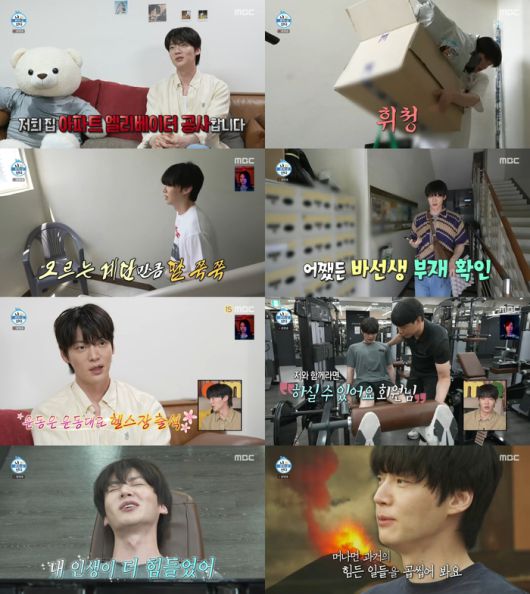 그러나 안재현은 쓰레기를 버리려고 계단을 내려가던 중 휘청거리더니 의자가 보이자 털썩 주저앉아 웃음을 자아냈다. 1층에 도착한 안재현은 거친 숨을 몰아쉬고는 분리수거 후 다시 20층으로 올라갔다.
