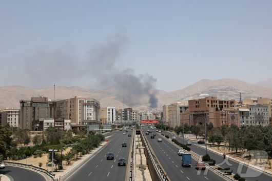 이란 테헤란의 샤란 석유 저장고에서 16일(현지시간) 연기가 피어오르고 있다. 이란은 이스라엘이 이 저장고를 공격했다고 주장하고 있다. 2025.06.16. ⓒ 로이터=뉴스1 ⓒ News1 권영미 기자 |