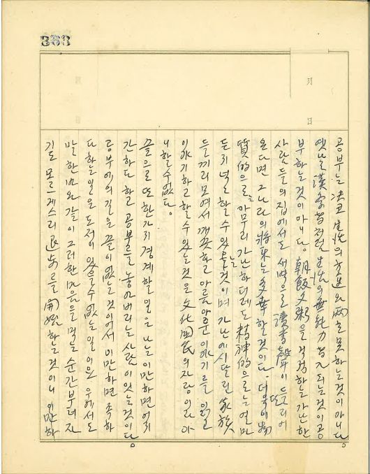 더욱이 한문으로만 나가던 옛날 같으면 여간해서는 문리(文理)를 얻을 수 없지만 그것은 기형적 현상이니 말할 것도 없고 앞으로 우리 한글로써 건설하는 문화엔 만인이 참여할 수 있는 것이고 또 그러해야만 진정한 국민문화일 수 있고 그 문화 자체가 정상적인 번영을 이룰 수 있는 것이다.