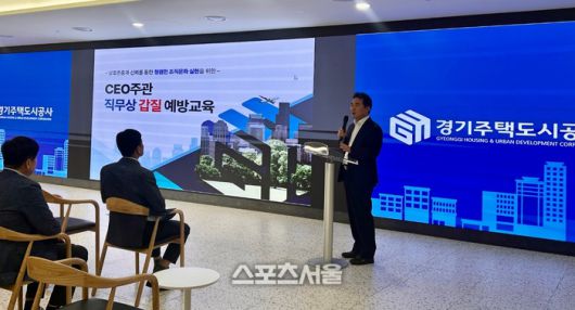 〔스포츠서울│수원=좌승훈기자〕 경기주택도시공사(GH)는 20일 이종선 사장 직무대행 주재로 임직원 약 80명이 참석한 가운데 ‘직무상 갑질 예방 교육’을 가졌다.