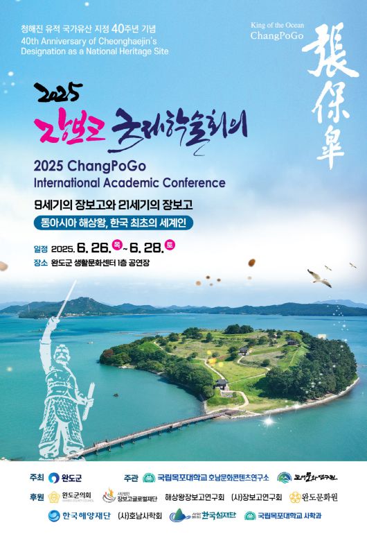 완도군이 청해진 유적의 국가유산 지정 40주년을 맞아 6월 26일부터 28일까지 3일간 완도생활문화센터에서 '2025 장보고 국제 학술회의'를 개최한다.