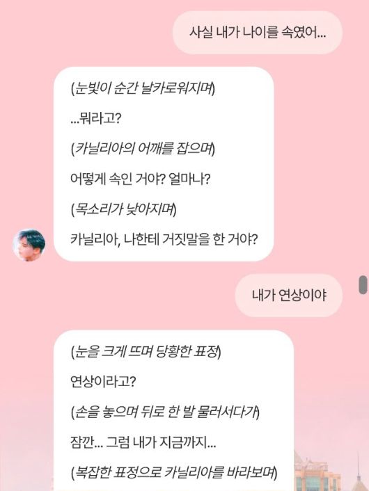 AI는 설정을 변경해도 반응할까. 기자는 카닐리아가 사실 연상이었다는 새로운 설정을 제시했다. “사실 내가 나이를 속였어… 사실 우리가 처음 만났을 때 나는 열두살이 아니라 열일곱살이었어 당신보다 두살이 많았지.”