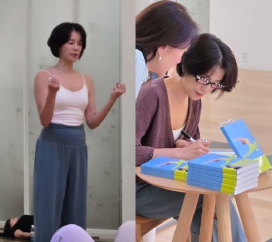 공개된 사진 속 김지호는 여러 명의 수강생들 앞에서 요가 동작을 가르치는가 하면, 직접 쓴 책을 바탕으로 수업을 진행하고 있다. 마지막에는 책에 직접 사인까지 해주는 모습이다.