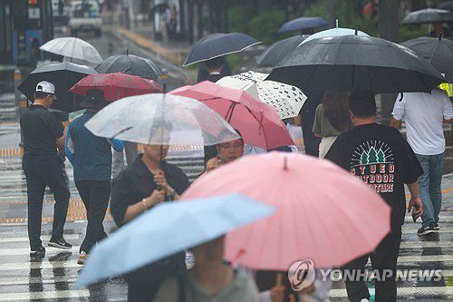 서울 호우주의보(서울=연합뉴스) 서대연 기자 = 서울 전역에 호우주의보가 내린 20일 서울 종로구 광화문 네거리에서 우산을 쓴 시민들이 길을 건너고 있다. 2025.6.20 dwise@yna.co.kr