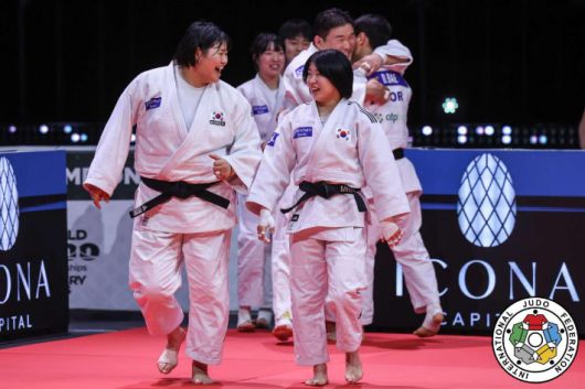 한국 유도가 세계선수권 혼성 단체전에서 처음 은메달을 획득했다.