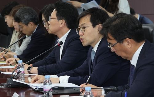 여한구 산업통상자원부 통상교섭본부장이 지난 17일 서울 종로구 한국무역보험공사에서 열린 제46회 통상추진위원회 회의에서 발언하고 있다. 연합뉴스 |