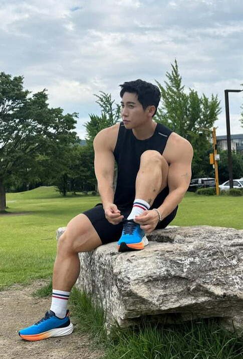 공개된 사진 속 유세윤은 러닝화와 몸이 드러나는 민소매 상의, 반바지를 착용하고 운동화 끈을 묶거나 스트레칭 하는 모습을 보였다.