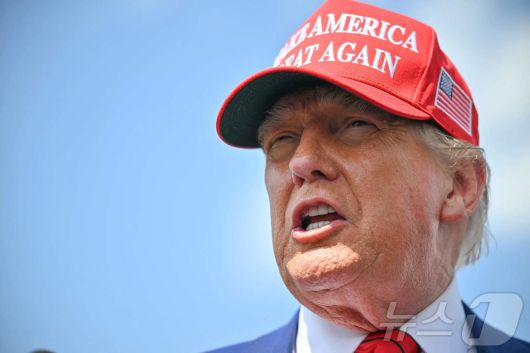 (뉴저지 AFP=뉴스1) 류정민 특파원 = 도널드 트럼프 미국 대통령이 20일(현지시간) 뉴저지주 모리스타운의 모리스타운 시립공항에서 기자들과 만나 "이스라엘에 이란에 대한 공격 중단을 요청하기는 어렵다"라고 말했다. 트럼프 대통령은 이후 자산의 지지 세력을 일컫는 소위 'MAGA'(마가) 기금 모금 만찬을 위해 베드민스터 골프 리조트로 향했다. 2025.06.20 ⓒ AFP=뉴스1