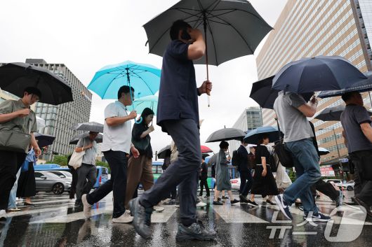 장마가 시작되며 서울 전역에 호우주의보가 내려진 20일 오전 서울 광화문네거리에서 우산을 쓴 시민들이 출근하고 있다. 2025.6.20/뉴스1 ⓒ News1 임세영 기자 |