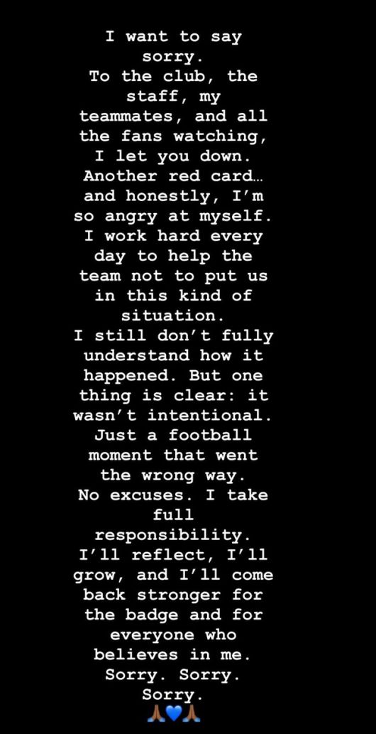 패배의 원인 중 하나가 잭슨의 퇴장이 됐다. 잭슨은 경기가 끝나고 자신의 SNS에 "죄송하다는 말을 드리고 싶다. 클럽, 코칭 스태프, 동료들, 그리고 나를 지켜보는 팬들을 실망시켰다. 또 퇴장 당하게 되어 화가 난다. 난 팀을 이런 상황에 빠뜨리지 않기 위해 매일 열심히 노력하고 있다. 어떻게 된 일인지 아직도 완전히 이해할 수 없다. 하지만 한 가지는 분명한데 그건 바로 고의가 아니었다는 점이다. 변명의 여지가 없고 모든 책임을 지겠다. 반성하고 성장해서 더 강해져서 나를 믿는 모든 분들을 위해 돌아오겠다. 죄송하고 죄송하고 죄송하다"라고 말했다.