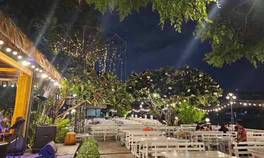 일정이 끝난 뒤 수안 두싯 대학교 학과장의 초대로 논타부리 지역의 식당 오유아 리버 테라스(OYua River Terrace)를 찾았다. 숙소 근처 강변에 있는 이 식당은 현지인들 사이에서 꽤 유명한 곳이다. 야외 테라스에선 라이브 공연이 펼쳐지고 가게 안은 손님들로 북적인다. 특히 태국의 음식문화를 오롯이 담아낸 메뉴들이 일행을 맞이했다. 애피타이저로 생야채, 데친 채소, 삶은 달걀이 나왔다. 이 위에 샬롯을 달큰하게 볶아 만든 듯한 페이스트를 얹어 먹는 방식은 마치 우리 된장이나 고추장을 찍어 먹는 방식과도 비슷해 친근하게 느껴졌다. 가지와 향신료 갈랑가 같은 재료들을 날것으로 접한 것도 신선한 경험이었다.