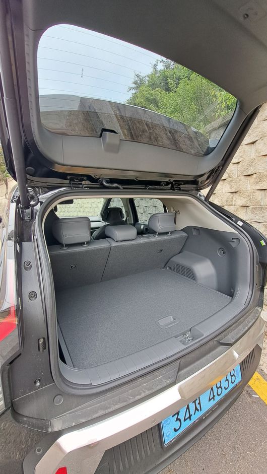 EV3는 소형 SUV임에도 실내 공간이 꽤 여유롭다. 기아가 새롭게 설계한 소형 공조시스템 덕분에 동승석 다리 공간이 6cm 넓어졌고, 전륜구동 기반 설계를 통해 뒷좌석과 트렁크 공간도 최대한 확보했다.