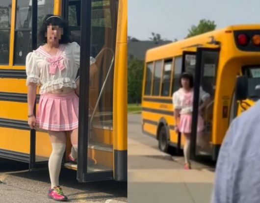 캐나다의 한 초등학교 버스 운전사가 여학생 교복 스타일의 의상을 입고 아이들을 등하교시키는 모습이 포착됐다. 논란이 일자 해당 운전자는 학부모 항의에 해고된 것으로 전해졌다.