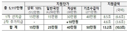 소비쿠폰은 1차와 2차로 나눠 지급될 전망이다. 1차에선 전 국민에게 기본적으로 15만원이 지급되며, 사회적 취약계층 중 기초생활보장 수급자는 총 40만원, 차상위 계층은 총 30만원을 더 받는다.
