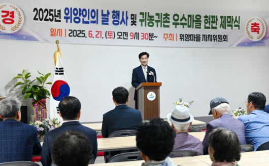 안병구 경남 밀양시장이 21일 부북면 위양마을에서 열린 귀농귀촌우수마을 현판제막식에서 인사말을 하고 있다. [사진=밀양시] 2025.06.21 |