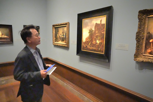 육동한 춘천시장이 20일(현지시간) 워싱턴 D.C.의 국립미술관을 찾아 내부전시를 둘러보고 있다. 사진|춘천시청 |