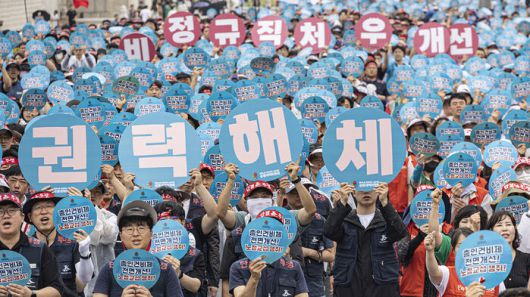 한국노총과 민주노총의 공공부문 노동조합 공동대책위원회(양대노총 공대위)는 종로구 광화문 서십자각에서 '공공노동자 총력투쟁 결의대회'를 열었습니다.