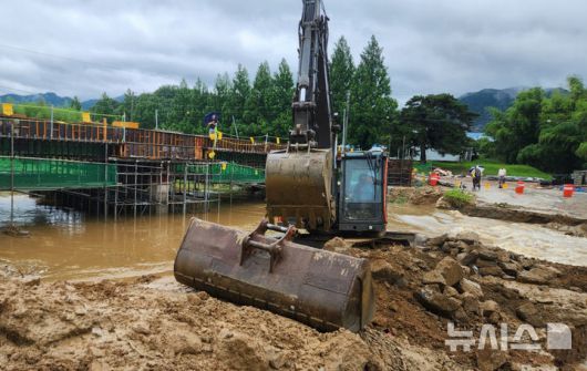 [담양=뉴시스] 박기웅 기자 = 장맛비가 내리고 있는 21일 오전 8시께 전남 담양군 창평면 의항리 한 하천이 범람할 우려가 있다는 신고가 접수, 당국이 굴삭기를 동원해 안전 조치를 하고 있다. (사진 = 담양소방서 제공) 2025.06.21. photo@newsis.com *재판매 및 DB 금지 |