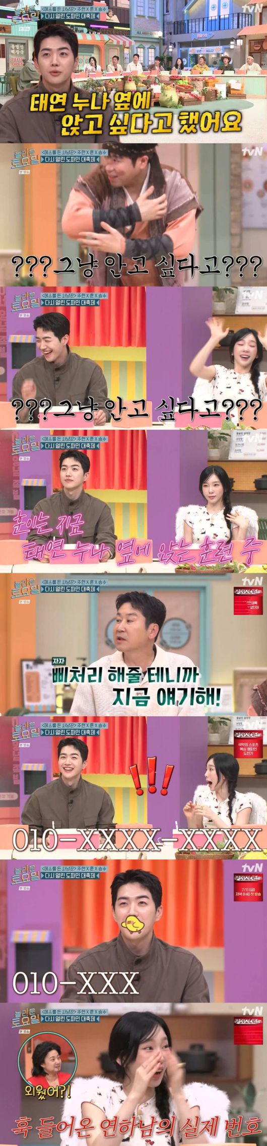 (엑스포츠뉴스 이예진 기자) 배우 강훈이 태연에게 실제 자신의 번호를 전달해 놀라움을 안겼다.