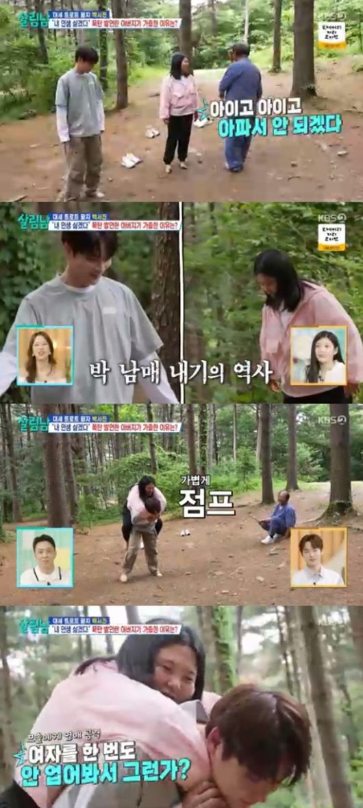 (엑스포츠뉴스 원민순 기자) 박서진이 여동생을 업어주다가 실리콘 걱정을 했다.