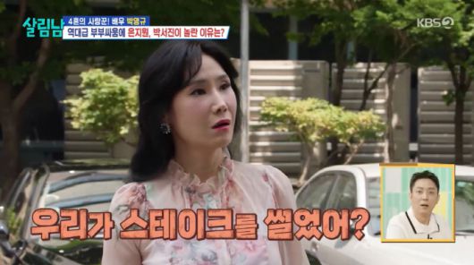 박영규는 "무슨 소리하고 있냐"라고 당황했고, 아내는 "우리가 여기서 스테이크를 썰었어? 무슨 소리를 하는 거냐"라고 화를 냈다.