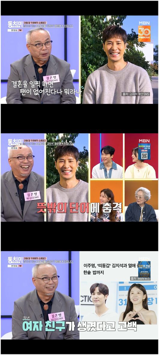 김온양은 “첫째랑 다른 아들은 결혼을 했다. 둘째인 김지석은 배우라서 결혼을 일찍하면 팬이 떨어진다나. 그런데 38살 정도 되니까 지 애랑 조카들이랑 나이 차가 생기지 않냐”라며 아들의 여자친구가 얼른 생기길 독촉했다고.