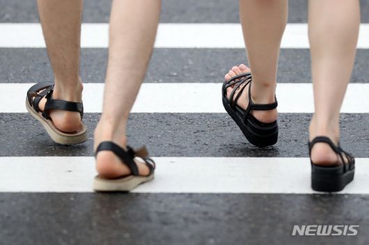 [서울=뉴시스] 백동현 기자 = 지난 2022년8월 11일 서울 시내 곳곳에서 시민들이 제각기 다양한 신발을 신고 이동하고 있다. 2022.08.13. livertrent@newsis.com |