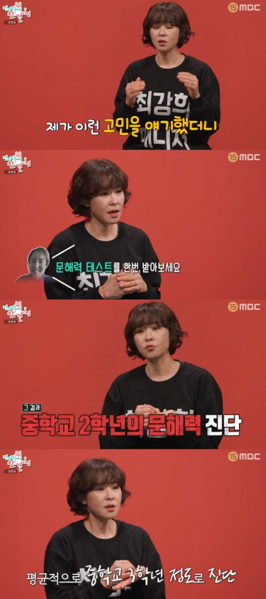 (엑스포츠뉴스 문채영 기자) 최강희가 중학생 수준의 문해력을 고백했다.
