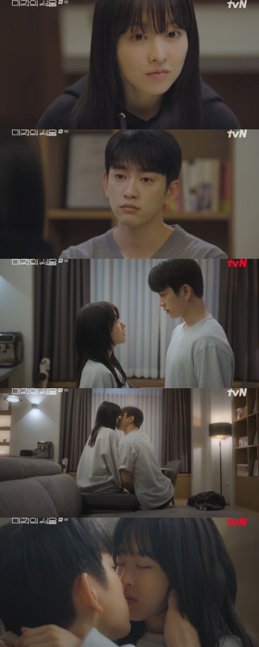 이호수는 "예뻐. 전에 머리도 예뻤고 더 짧았을 때도 예뻤고"라며 눈을 맞췄고, 유미지에게 키스했다. 유미지는 "저기 지금 무슨 생각해? 아, 아니다. 아니야, 미안"이라며 긴장한 기색을 감추지 못했고, 이호수는 "왜? 넌 무슨 생각하는데?"라며 관심을 나타냈다.