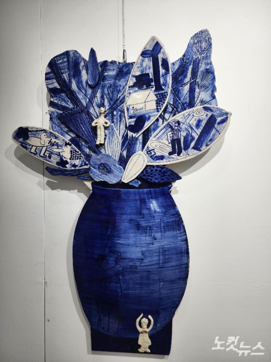 코로나 팬더믹 이후 작업실이 있는 중국 징더전을 가지 못해 세라믹 작업 대신 3, 4년 동안 거의 그림만 그렸다는 그는 "작가가 움직여야 작가지"라며 제주의 정길영그림카페라는 거대한 작품을 만들기도 했다. 윤석민 윤 공간 대표 제공 |