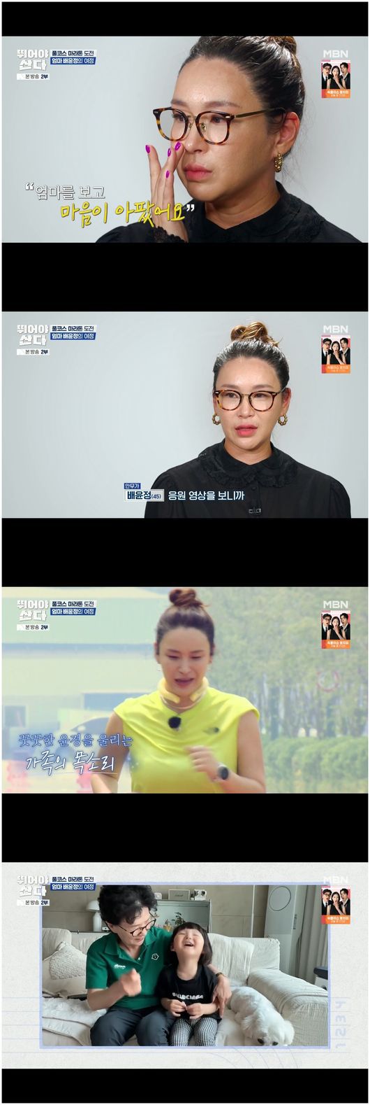 러너스 하이라고 해도 무방할 정도로 지치지 않고 웃음을 방글방글 띠며 달리는 한상보는 2위를 달성했다. 어머니와 아들의 목소리를 들으며 울면서 뛰던 배윤정은 끝내 무릎 부상으로 중간에서 기권했다. 배윤정은 “가뜩이나 서러운데 그 영상을 보니까, 아들도 좋지만 저희 엄마 모습을 보고 마음이 아팠다”라며 “제가 다른 집 딸처럼 살가운 딸은 아니었다. 뇌가 극한에 가니까 아들 생각도 나지만, 엄마 생각이 났다”라면서 펑펑 울었다.